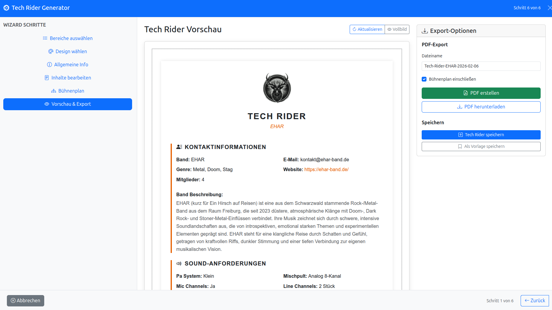 Tech Rider (Vorschau & Export)