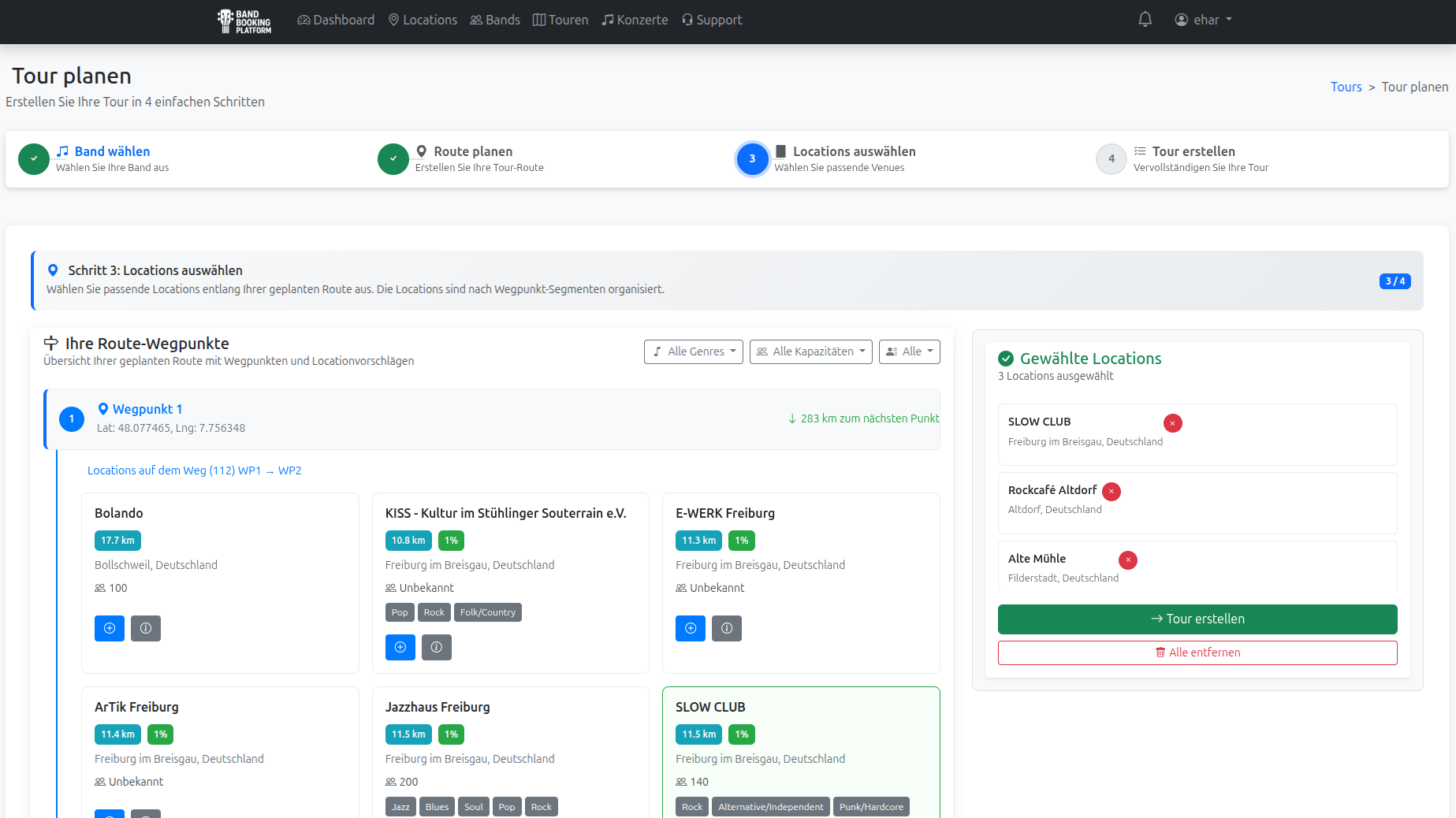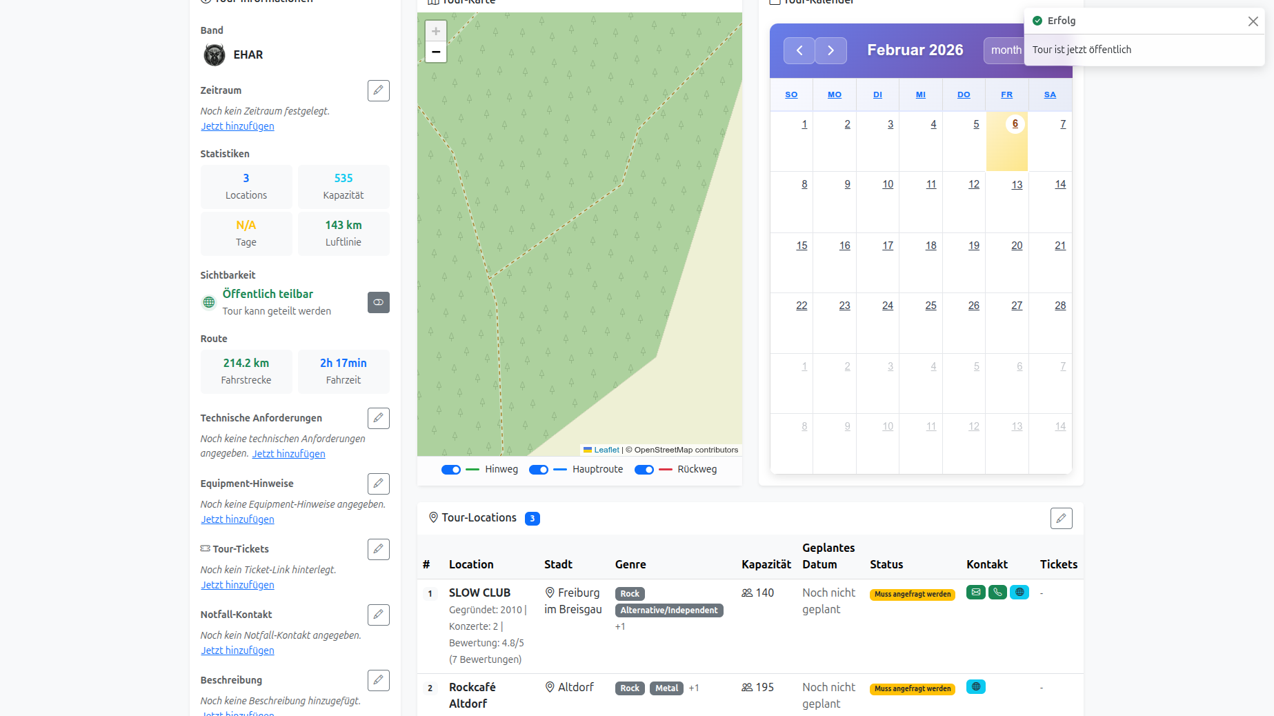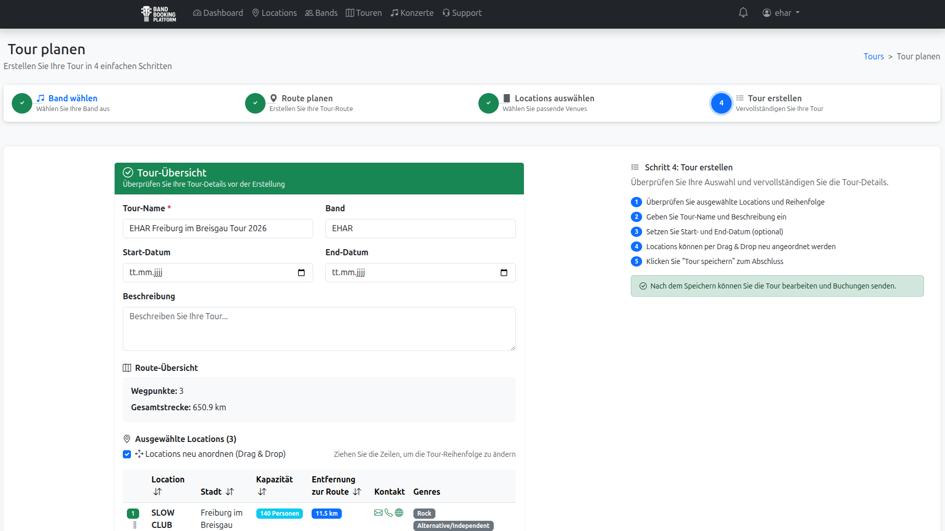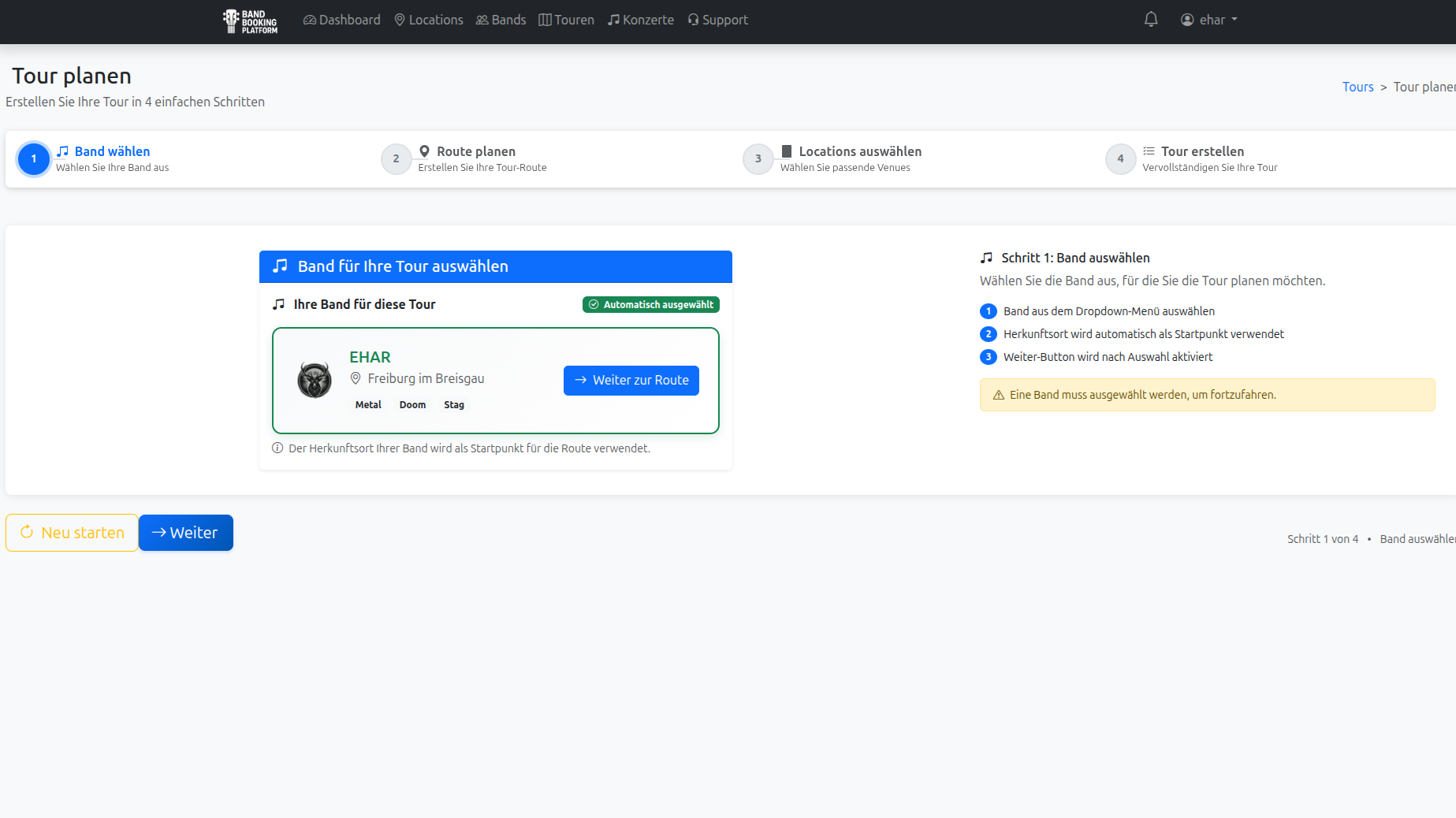 Registrieren, Band anlegen, erste Tour planen – dauert keine 2 Minuten.