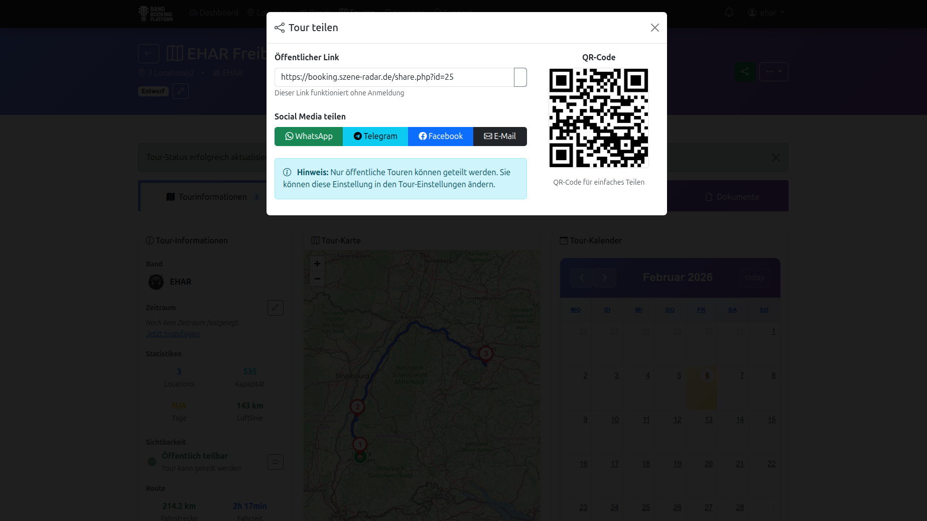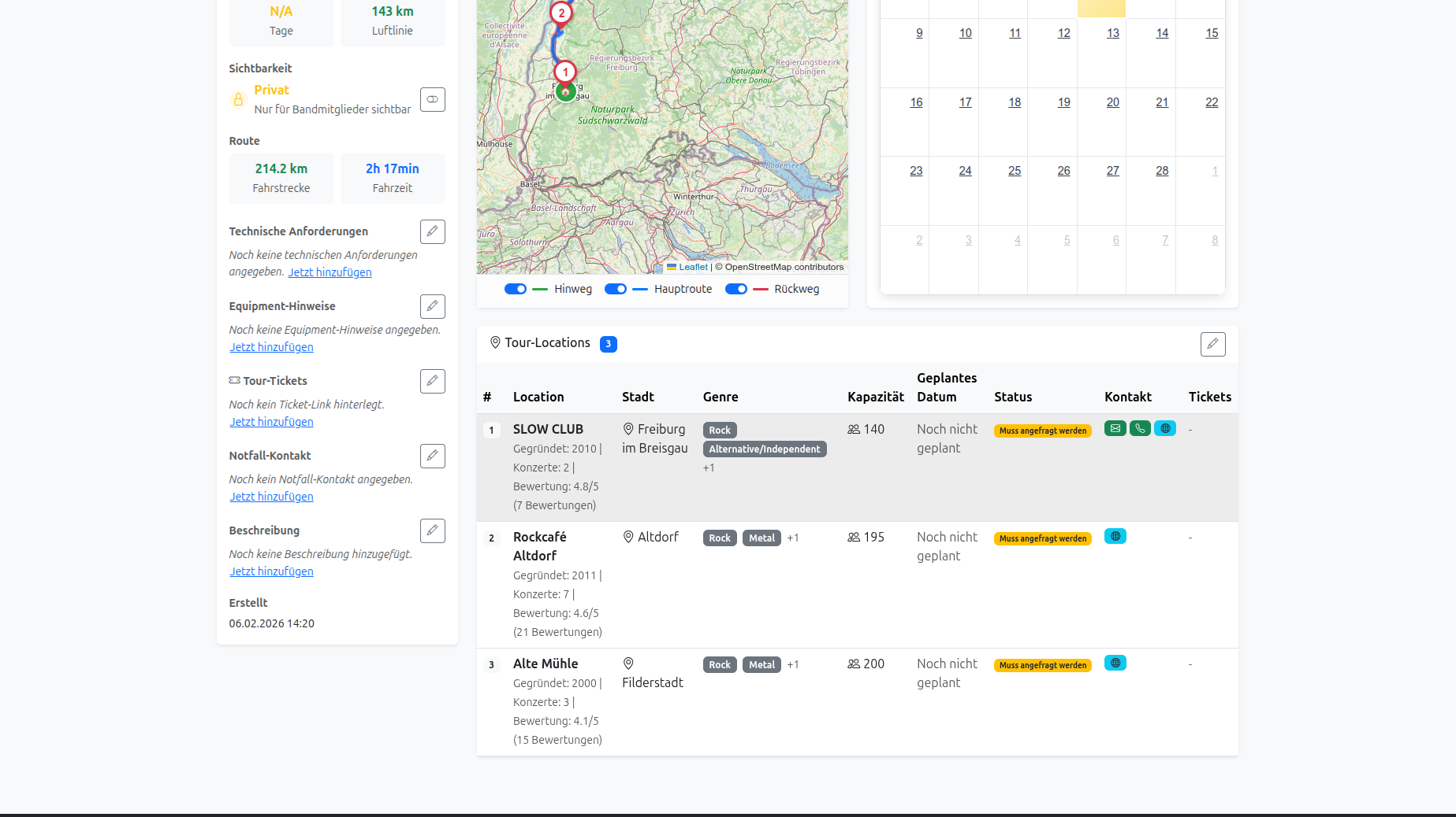 Registrieren, Band anlegen, erste Tour planen – dauert keine 2 Minuten.